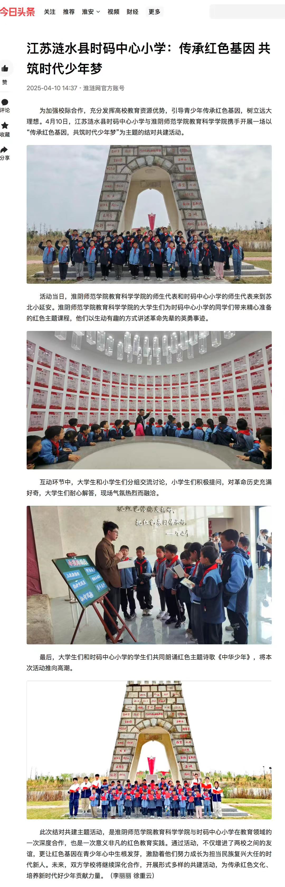 【今日头条】江苏涟水县时码中心小学:传承红色基因 共筑时代少年梦