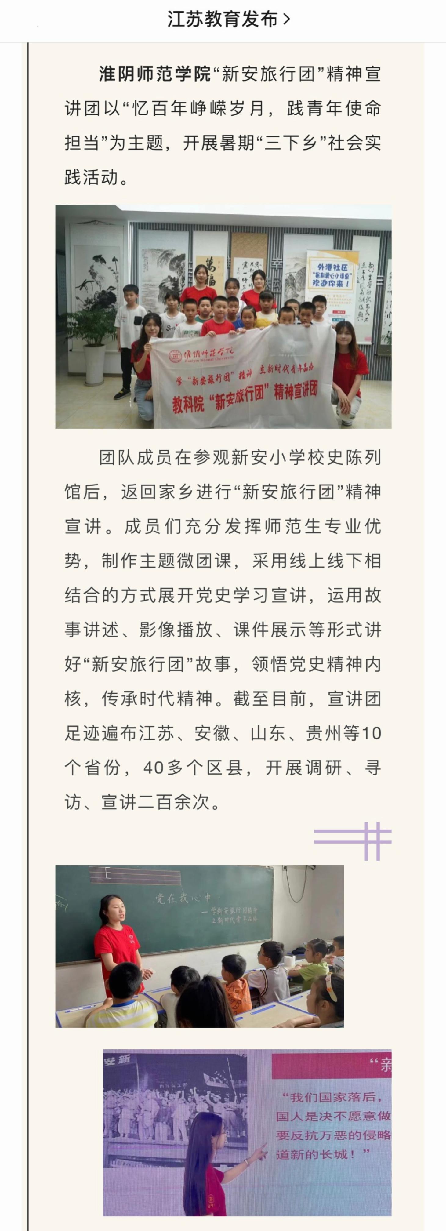 【江苏教育】淮师“新安旅行团”精神宣讲团开展暑期“三下乡”社会实践活动