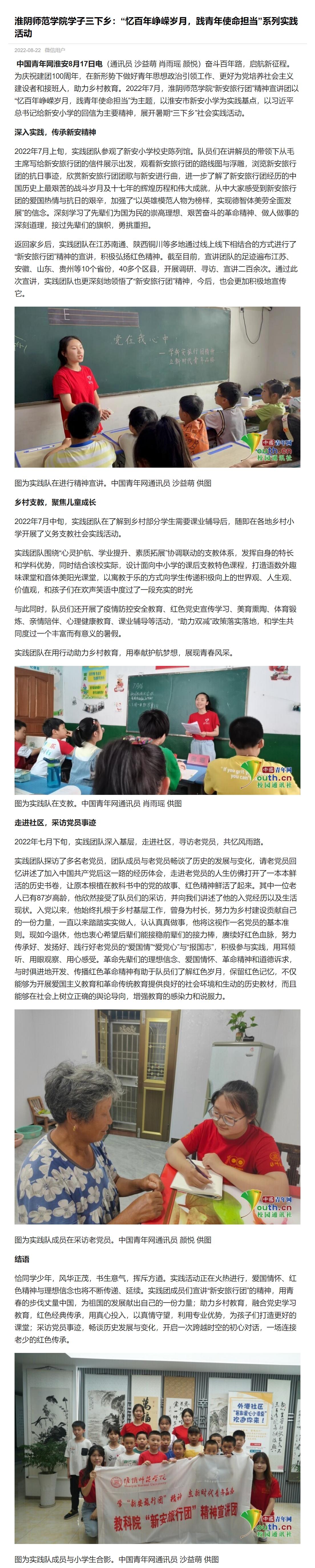 刊播媒体:中国青年网 刊播时间:8月17日 通讯员:沙益萌 肖雨瑶 颜悦