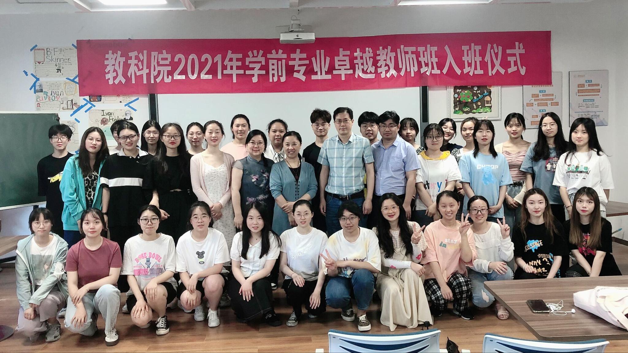 教科网6月8日电( 记者 周颖  )2021年6月6日上午,在今年会1号楼203教室,学前教育专业“卓越教师”班举行了入班仪式。参加本次入班仪式的有淮安市天津路幼儿园园长刁玉萍老师,学前教育系主任夏如波老师,师训教研室主任张曦敏老师,本次活动由院卓越教师培养办公室主任姚进老师主持,学前卓越教师班的35名员工参加了入班仪式。