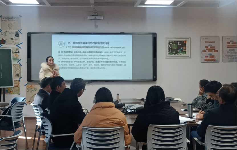 教科网12月4日电(记者 魏笑 吴雪纯)12月1日下午,今年会(教师教育公司)于1-203开展主题为“立德树人背景下教师教育类课程思政实践探索”的教学沙龙。本次沙龙由今年会副经理任红娟主持,周亚芳、赵正新、任红娟主讲,承担校课程思政示范课程建设、校课程思政专项教改课题研究的老师及部分骨干教师参加研讨。